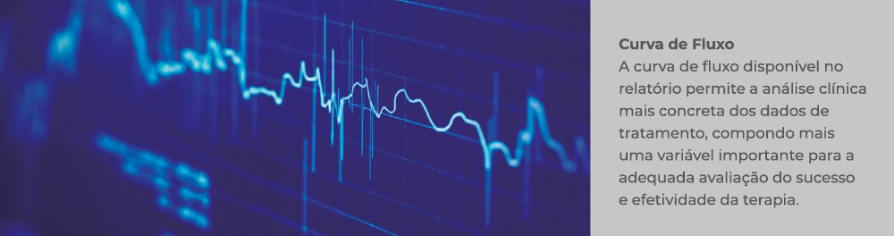- Curva de fluxo: a curva de fluxo permite análise clínica mais criteriosa dos dados de terapia do paciente, compondo uma importante variável para a avaliação e efetividade da terapia