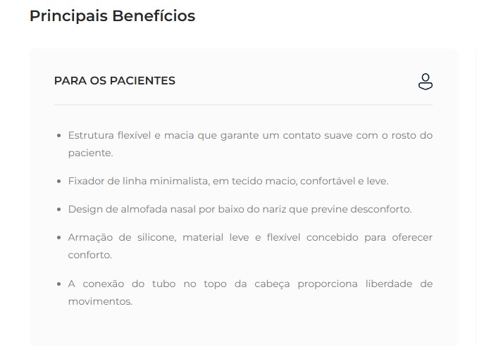 - Foi projetada para ser reutilizada por um único paciente em ambiente doméstico.